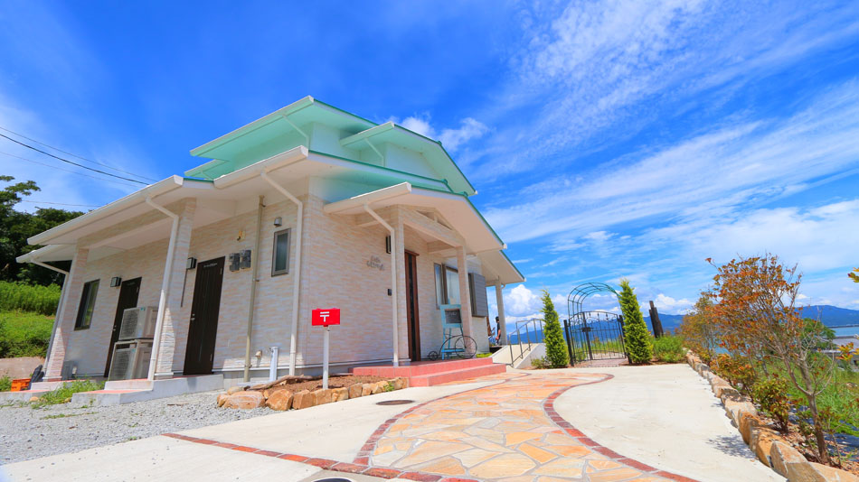 海を望む丘のペンション。目の前に八代海が広がり、オーナーが育てた数々の樹木や草花に心癒されます。